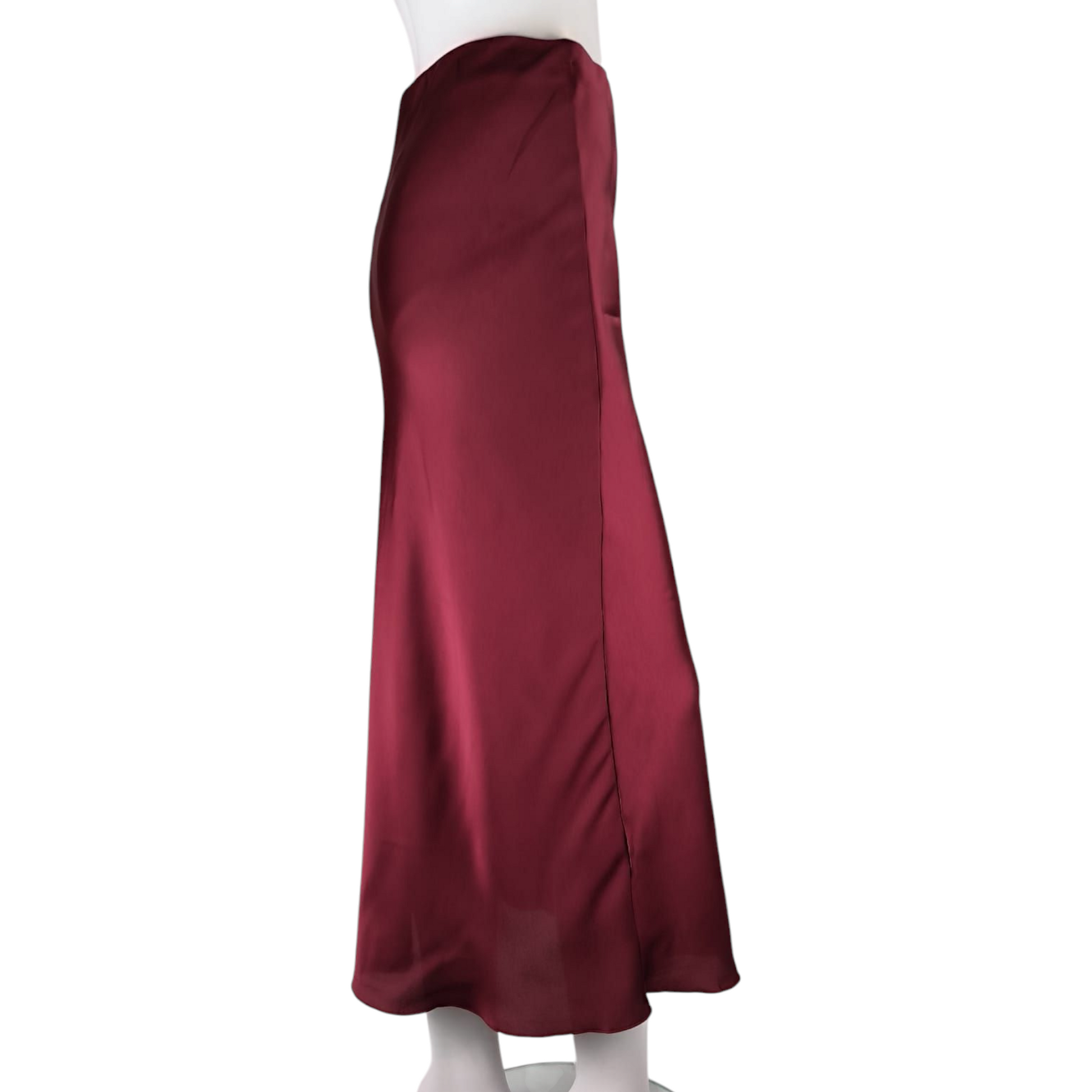 Descubre la elegancia en cada paso con nuestra falda satinada. Su corte midi y tejido fluido realzan la silueta con un brillo sutil y sofisticado. perfecta para una cena especial, una salida con amigas o un look de oficina con estilo. Su tono vino añade un toque de glamour atemporal que nunca falla.