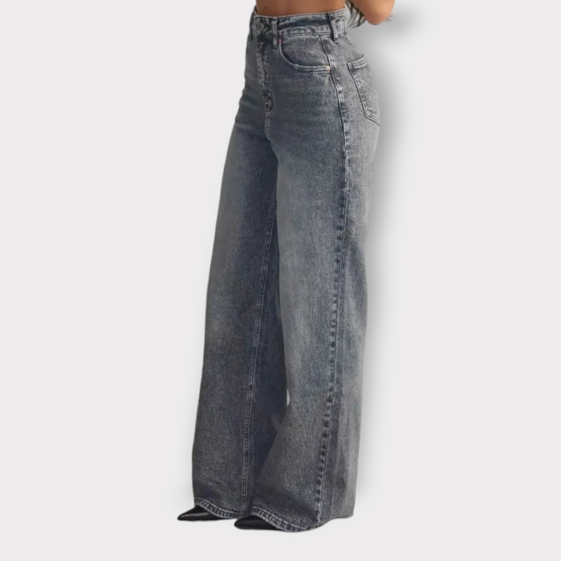 Este vaquero gris de tiro alto y corte recto es la prenda ideal para un look moderno y con carácter. Su acabado desgastado aporta un aire vintage y su fit cómodo realza la figura sin perder libertad de movimiento. Perfecto para combinar con tops ajustados, blazers o camisetas oversize. Un básico versátil para llevar del día a la noche con mucho estilo.